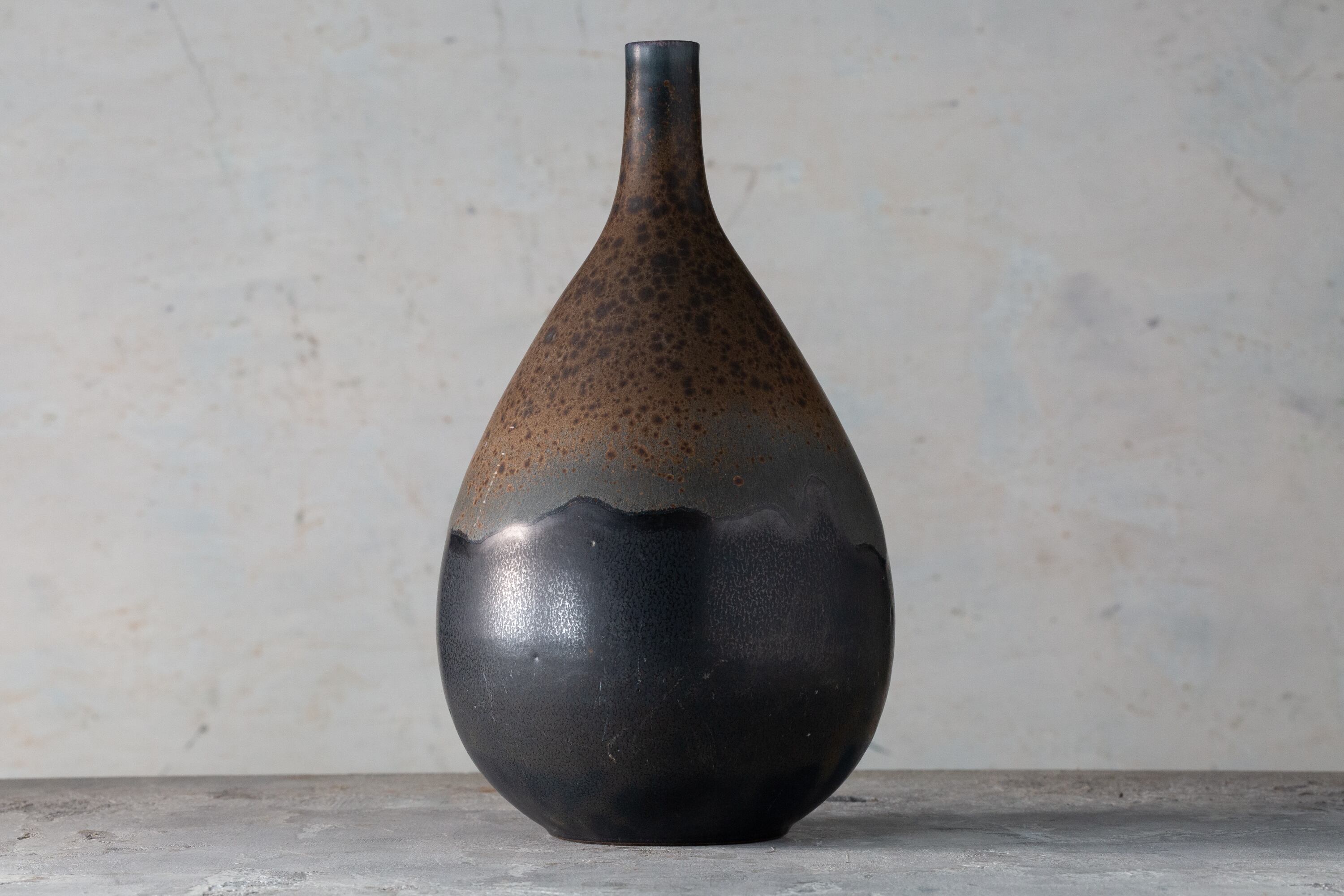 A bold harmony of shadow and flame—Kasama ware’s quiet strength in form.