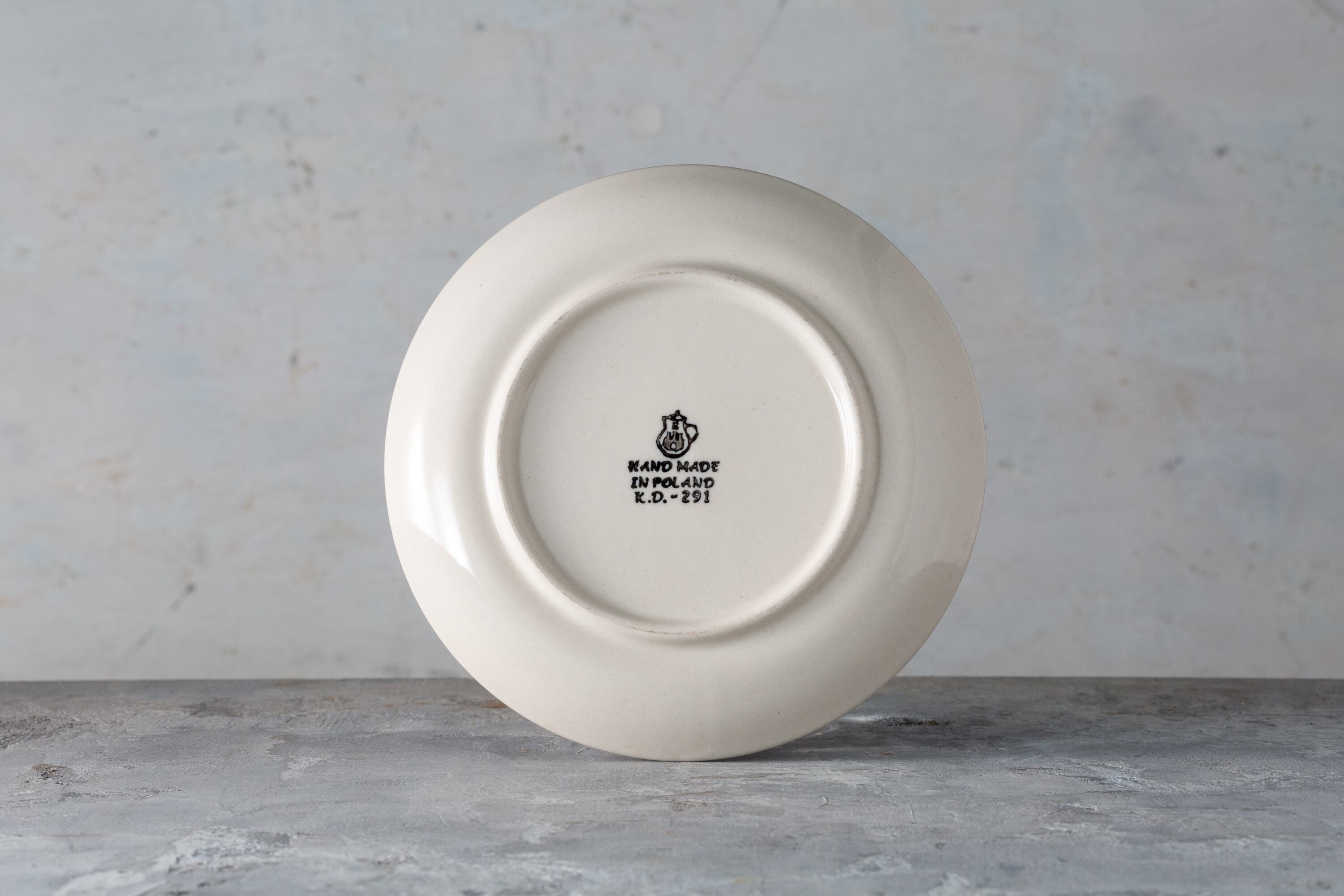 1980年代にポーランドの陶都ボレスワヴィエツで作られたセラミカ・アルティスティッチナ No.835シリーズは、ポーランド陶器の伝統を鮮やかに映し出す逸品です。青いデイジーの花模様が職人の手描きで施され、周囲を渦巻き文様が彩ります。サラダボウルと2枚のプレートが揃い、統一感のある美しさを食卓に添えます。