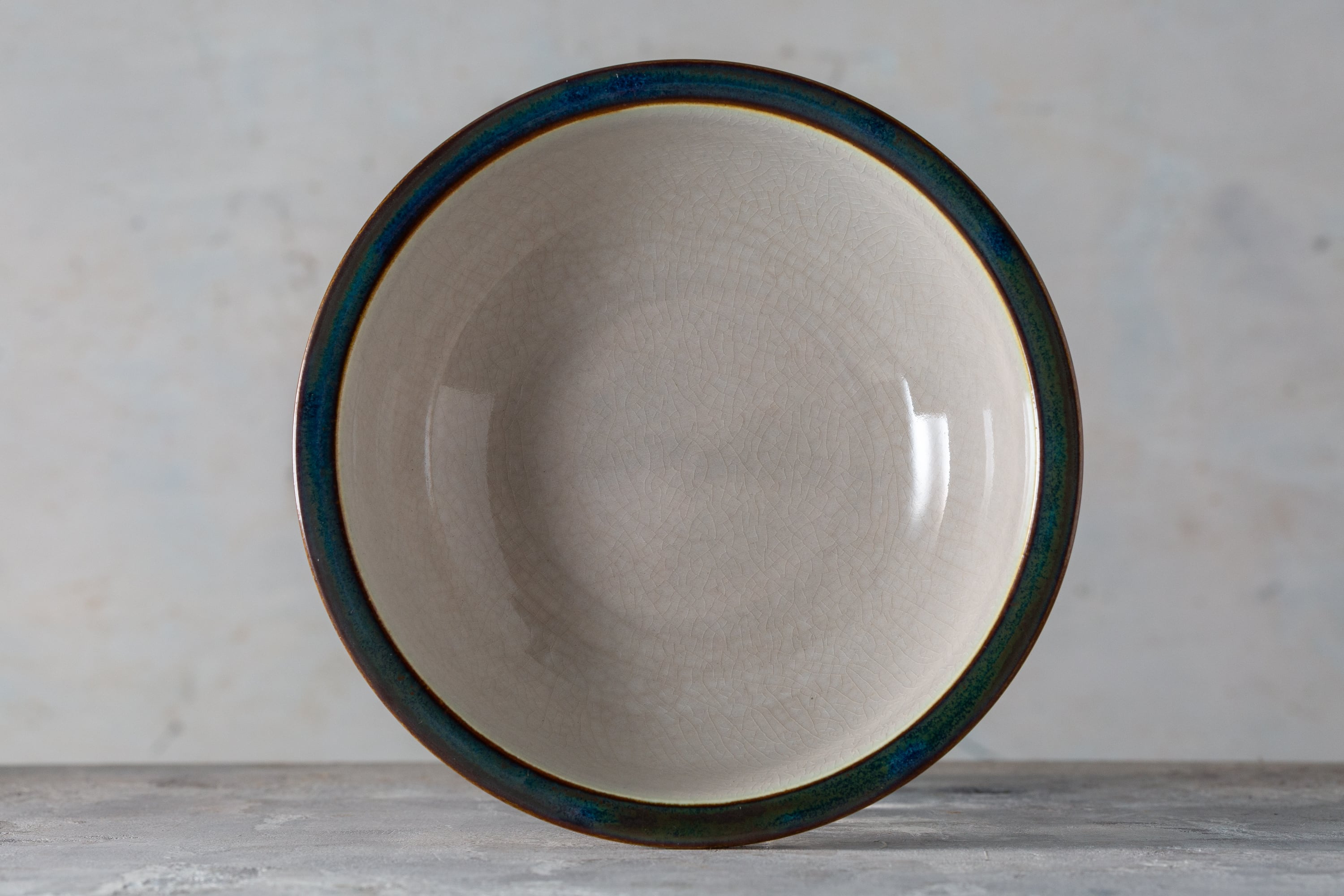 This Jens H. Quistgaard "Tema" bowl, crafted in Denmark by Bing & Grøndahl during the 1980s, embodies the essence of Scandinavian modern design. Its refined glaze with subtle variations and natural crackle pattern highlights the timeless beauty of stoneware. Designed with both function and aesthetic simplicity, this piece can be enjoyed as a serving bowl, tableware, or a stylish interior accent. In very good condition with no noticeable damage, it remains a desirable collectible for admirers of Danish modernism and Quistgaard’s iconic works.