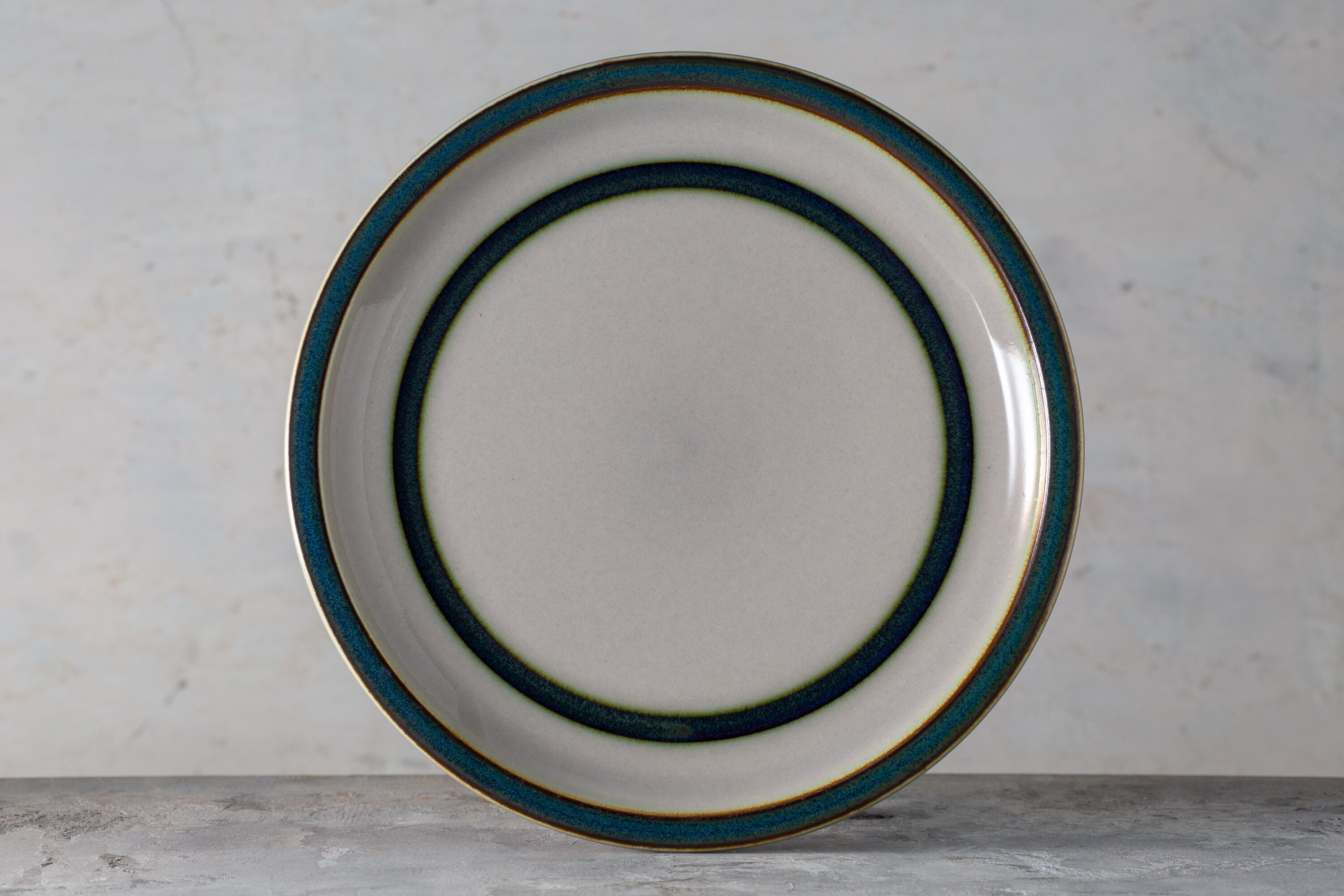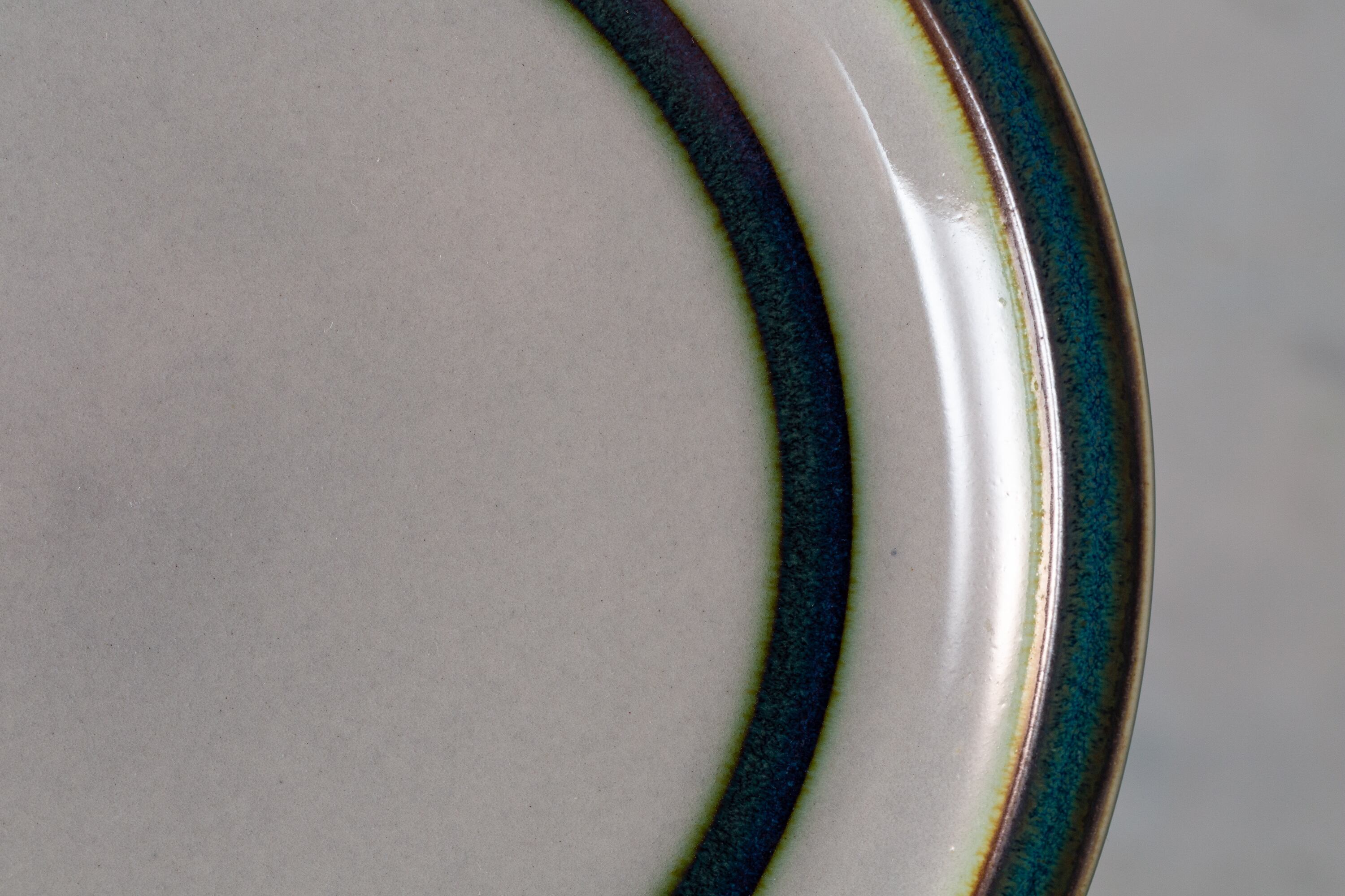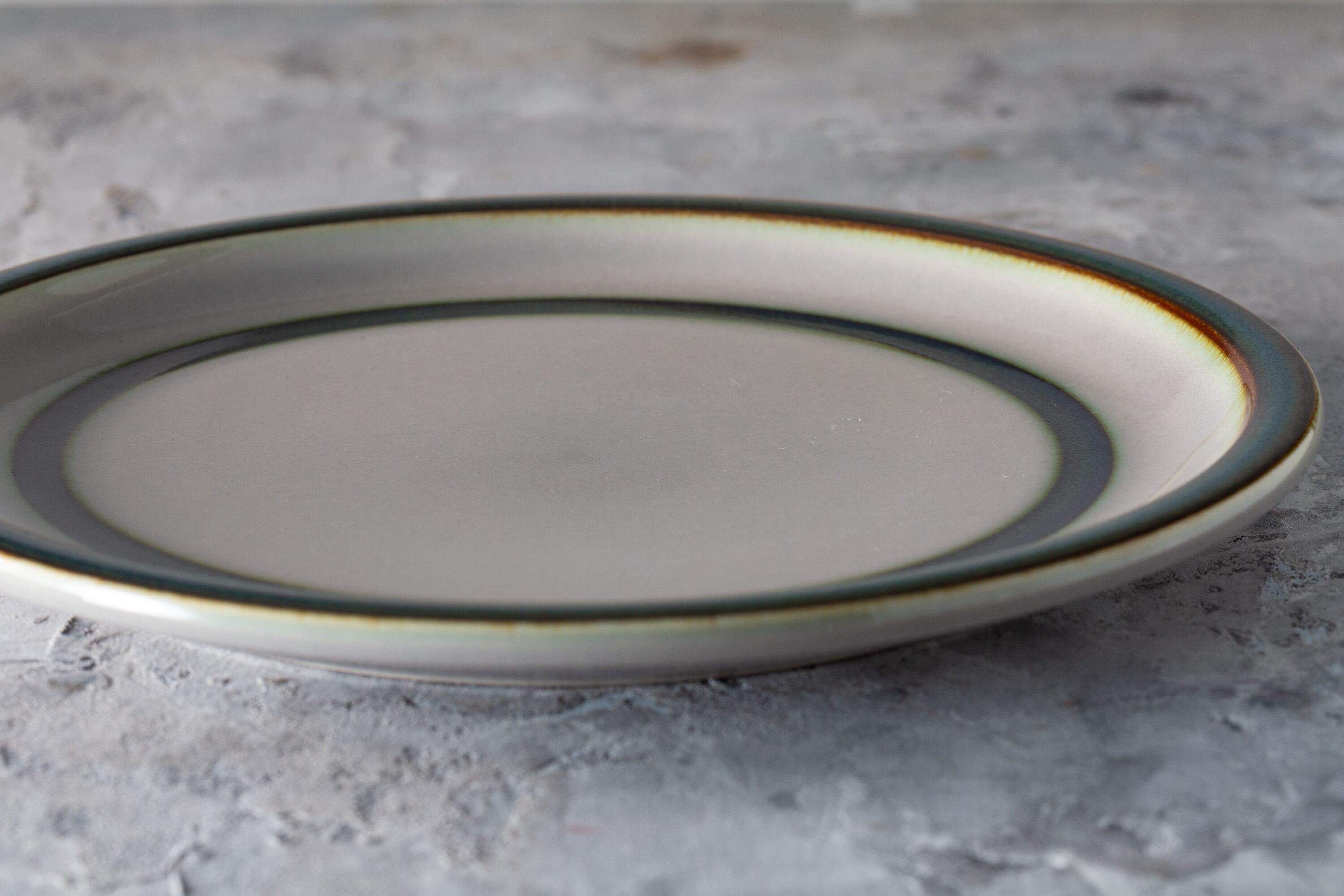 1980年代にデンマークのBing & Grøndahl社で製作された、イェンス・H・クイストゴー「テーマ」シリーズのディナープレートです。均整の取れたフォルムと釉薬の微妙な色合いの移ろいが、食卓に静かな存在感をもたらします。日常の食事用としてはもちろん、洗練されたサービングプレートとしても活躍し、北欧デザインの美意識を感じられるコレクションピースです。目立つ傷もなく良好な状態で、デンマークモダンと侘び寂びの静けさが調和した逸品です。