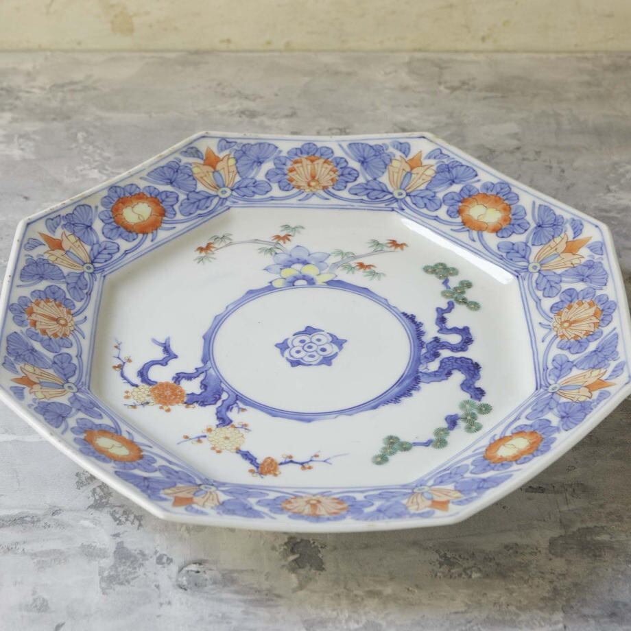 松竹梅色絵花蝶図八角皿で大きなお皿になります。