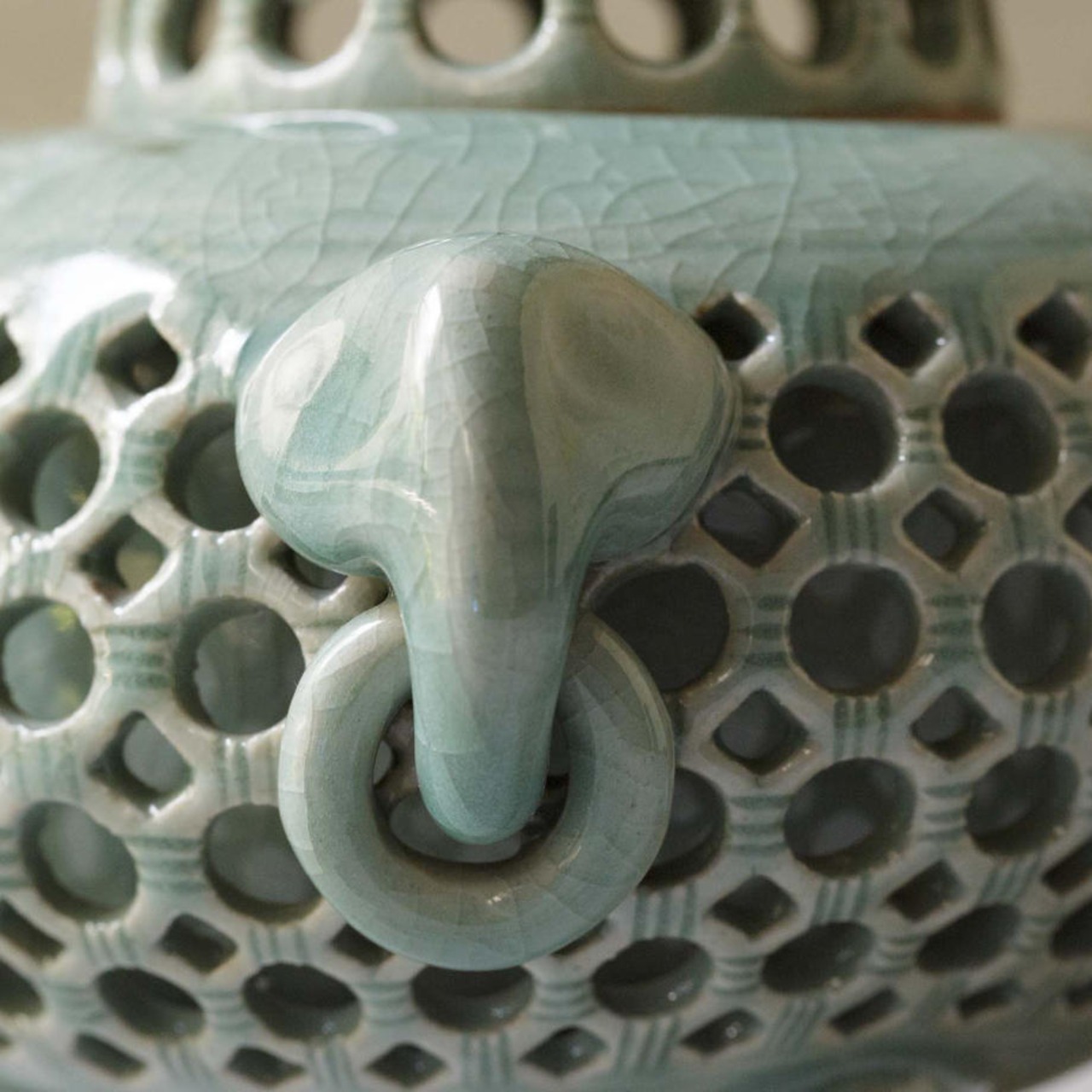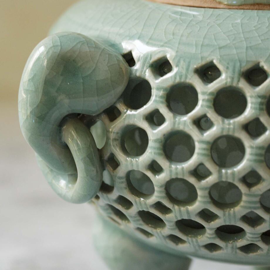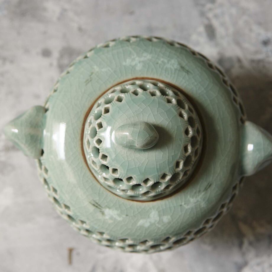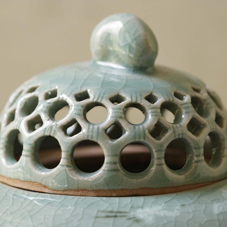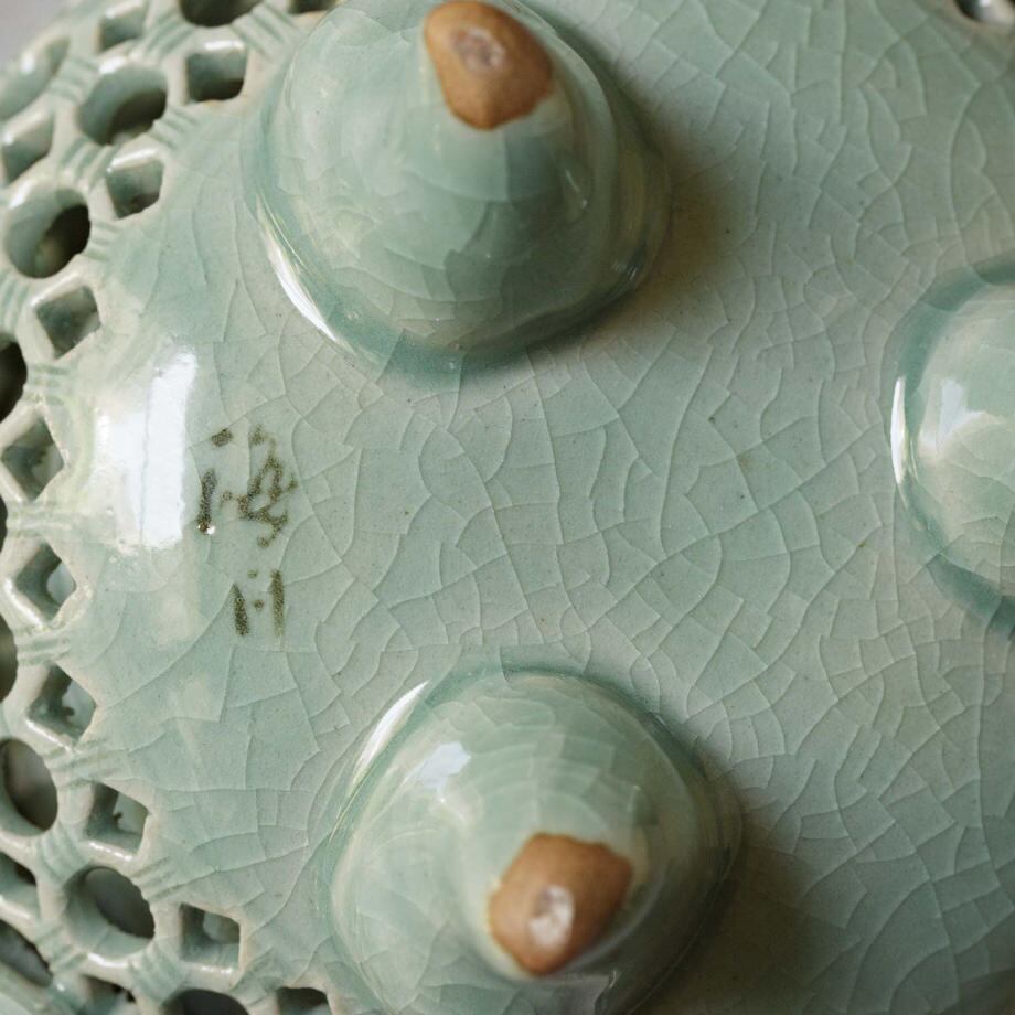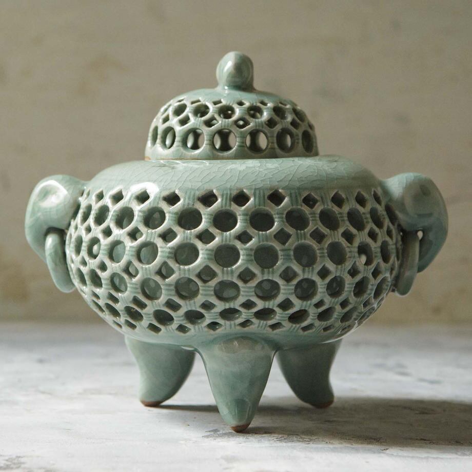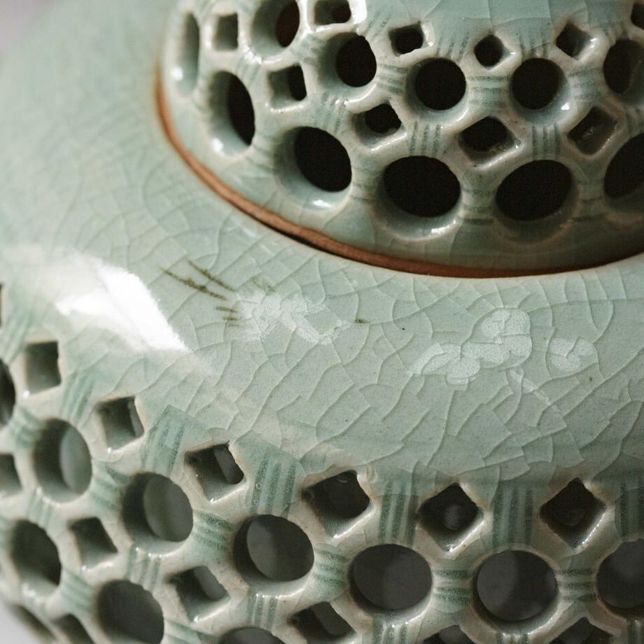 青磁の透彫香炉です。
