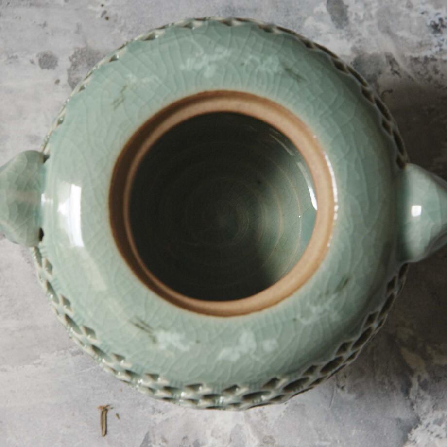 歪になるのは仕方がないか 青磁透彫香炉 現代 Modern Celadon Engraving Incense Burner