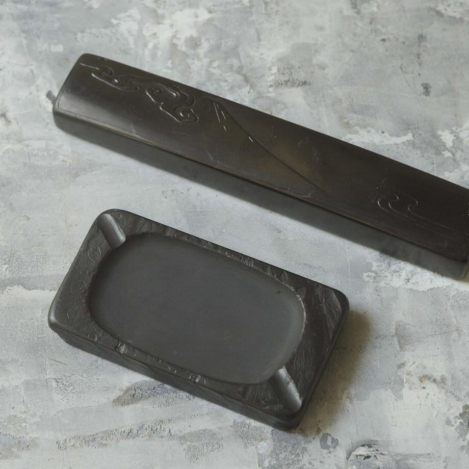 サイズ:硯 長辺125mm x 高17mm 文鎮 長辺215mm x 高20mm